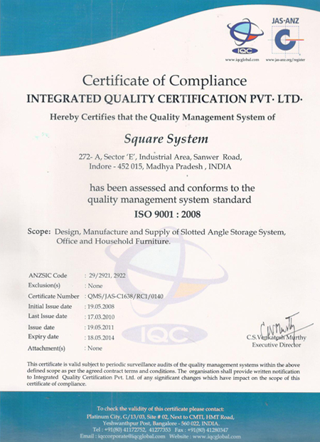 Our mission is to create the best quality products and satisfied consumers. Supporting India’s growth in the furniture and heavy metal segment through speed, efficiency and innovation. Square Storage System’s vision is to create and sustain leadership position in the Indian furniture and heavy metal market. We aim to grow beyond boundaries of India and bring global recognition to India for quality and efficiency.