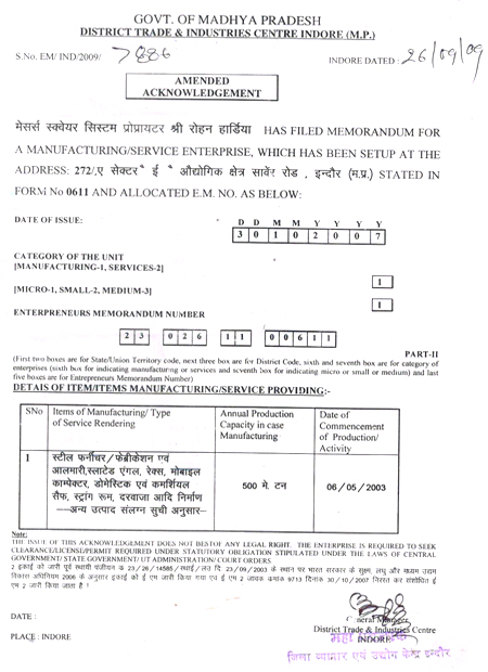 Square System is committed to serve quality products and service to the consumers always. The Company persistently strives for continuous improvement and excellence in products, processes, and services. The Company is passion about its brands, products and people and for delivering the best to the consumers. The Company practices total transparency in business functioning. customer & supplier transactions and HR policies.